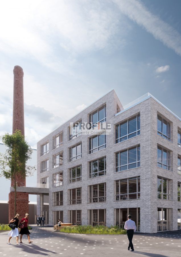 Die ehemalige Produktionsliegenschaft besteht aus vier Bürogebäuden, die durch die Klinkerfassaden die Atmosphäre von industriellen Bauten behalten und dabei dem modernen Neubaustandard entsprechen. Der begrünte Innenhof mit Aufenthaltsbereichen bietet gute Möglichkeiten zur Entspannung.