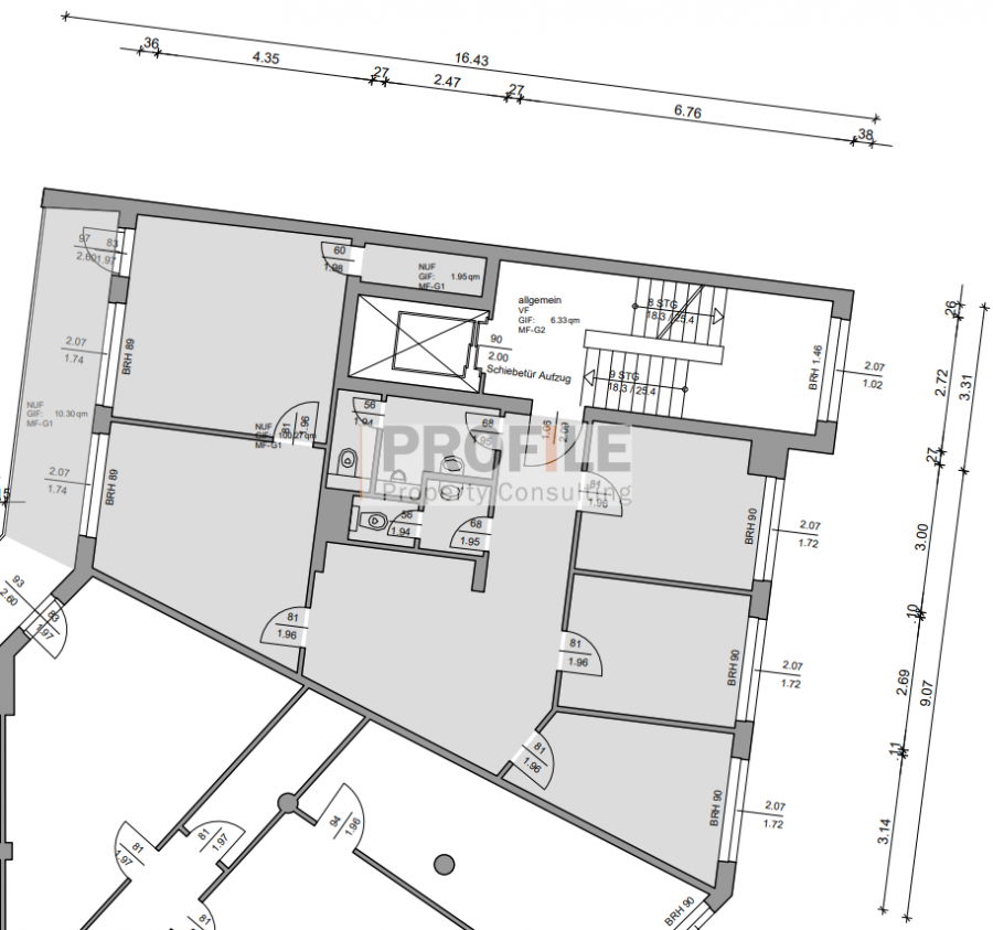 Das Das Areal besteht aus einem 7-geschossigen Neubau aus dem Jahre 1998 und einem Altbau mit wunderschön erhaltener Klinkerfassade. Der Neubau, ein charakteristisches Eckgebäude, besitzt Anschluss an drei verschiedene Kommunikationsnetzwerke, ist flächendeckend KAT7-Verkabelt und barrierefrei zugänglich. Getrennte Sanitäranlagen sind vorhanden. Darüber hinaus verfügt der gesamte Gebäude-komplex über eine Tiefgarage und über behindertengerechte Aufzüge.