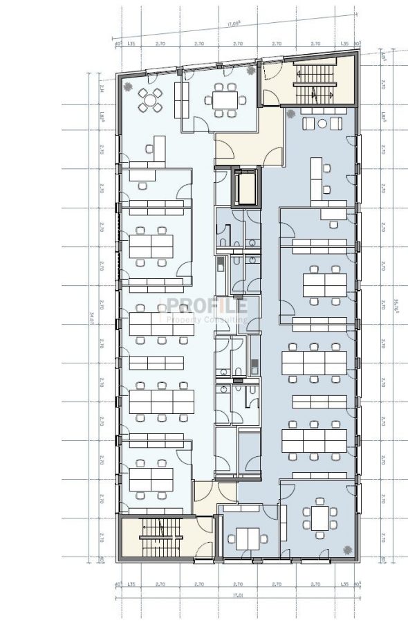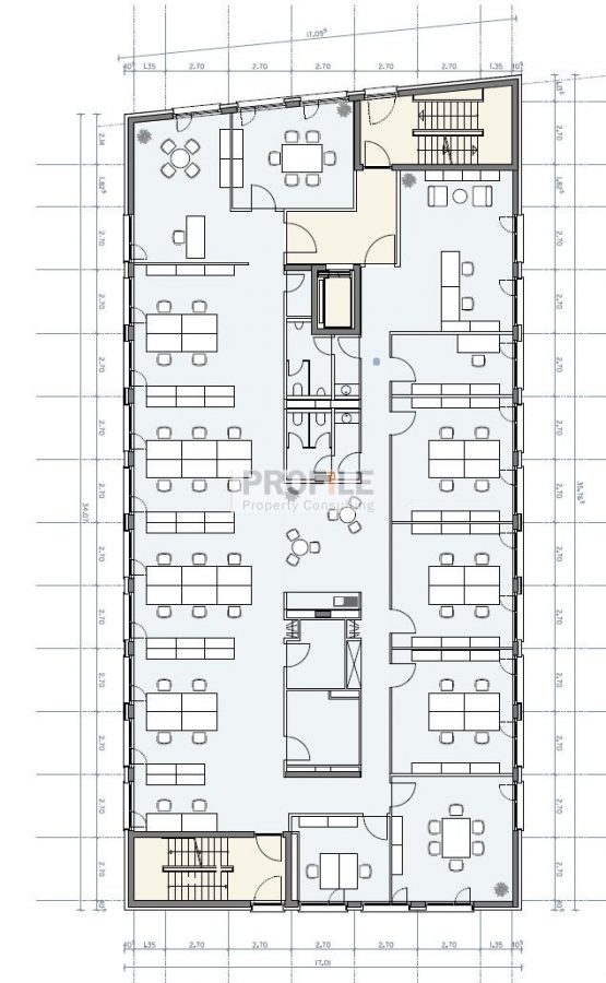 Die effizienten vakanten Büroflächen befinden sich auf 4 Etagen und lassen sich individuell gestalten und ausstatten, wobei BAP-gerechte Beleuchtung, Fußbodenheizung, ausgestattete Teeküchen und außenliegender Sonnenschutz zum Ausstattungsstandard für alle Flächen gehören. Der flexible Grundriss ermöglicht diverse Raumnutzungen von Einzelbüros bis hin zum Großraum.