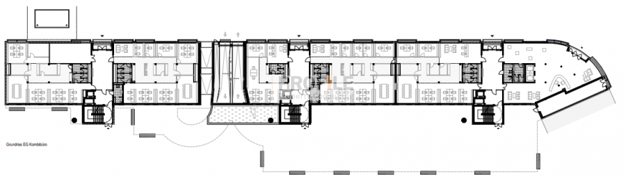 Es ist möglich mehrere Büroeinheiten zusammen zu legen und die Einheiten im 5. OG haben Zugang zu den, nach Süden ausgerichteten, Terrassen.
