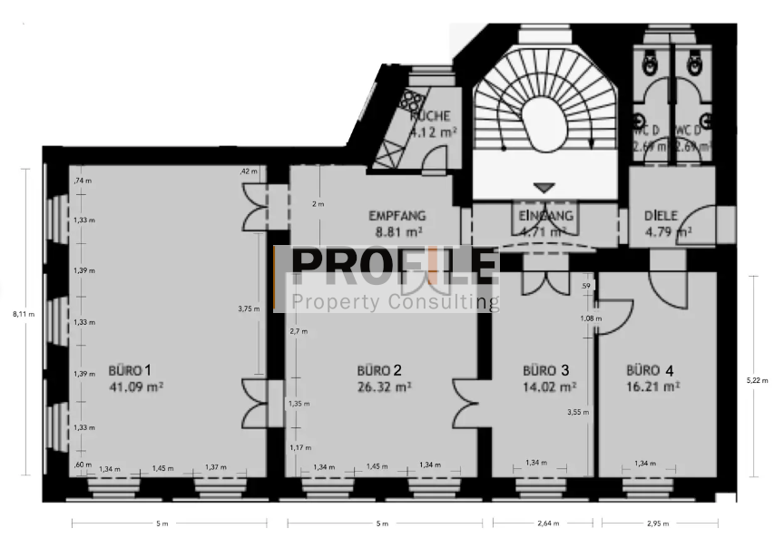 Hochwertiges Parkett, eine kleine Küche, zwei WC sowie Klimageräte und eine 1 Gbit Internetverbin-dung sorgen für Komfort.