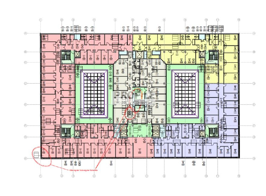 Bei der angebotenen Fläche handelt es sich um die gelb markierte Fläche im Grundriss